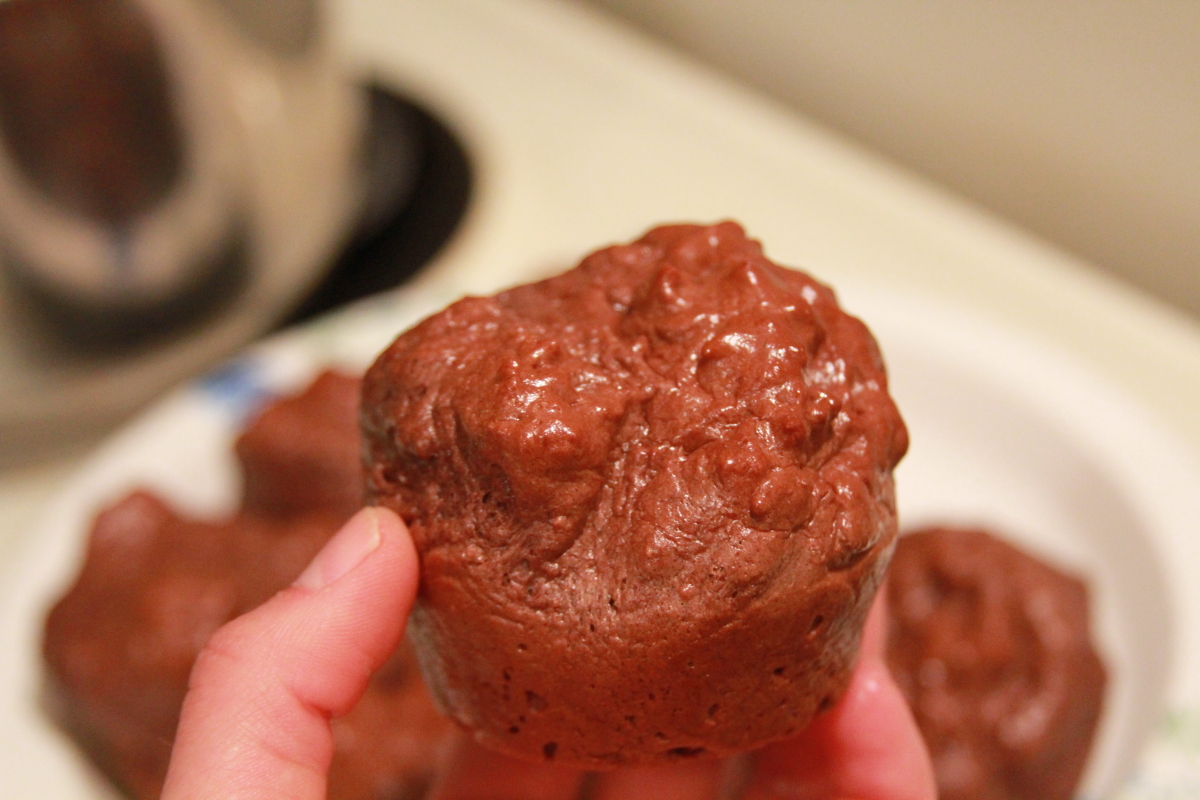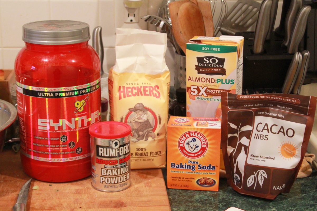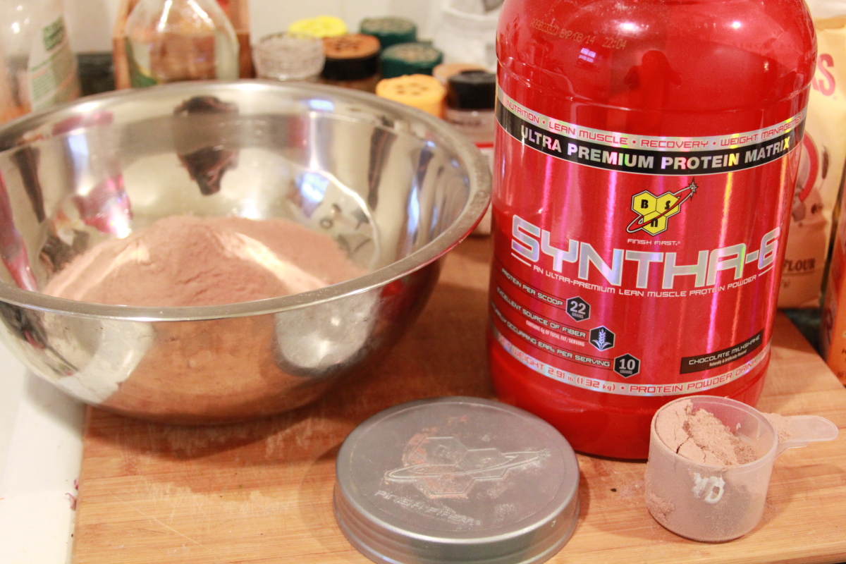 Here is a fast and delicious recipe for a high protein snack made with BSN Supplements Chocolate Milkshake flavored protein powder. These come out nice and fluffy but can be cooled and taken with you to work or school in a ziplock bag for a quick protein packed snack.