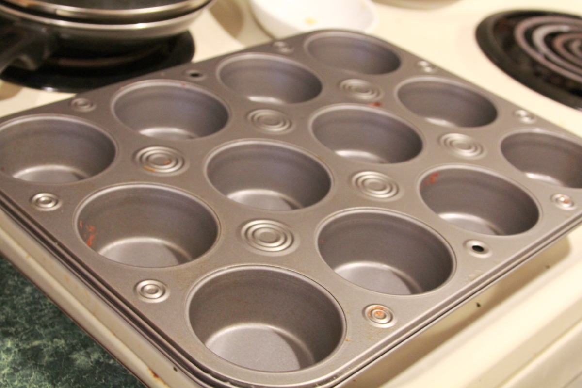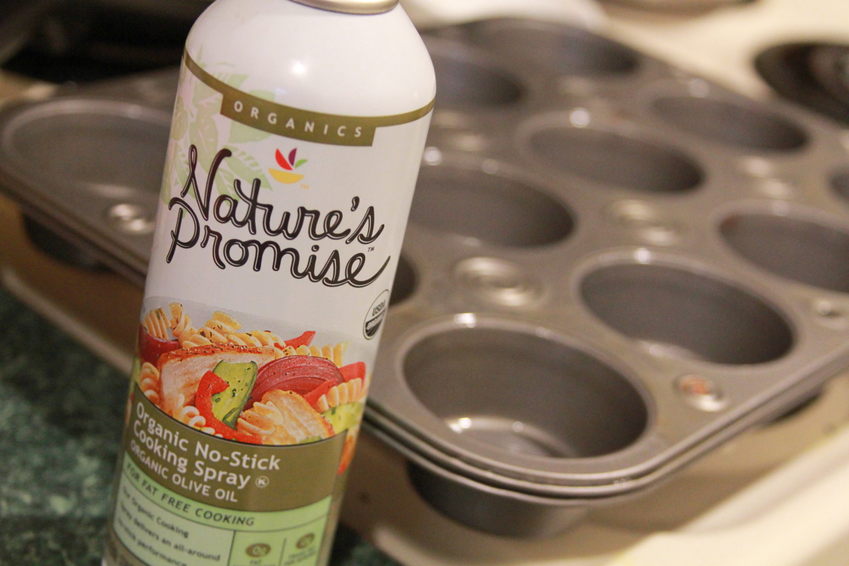 1. Spray cupcake tin with the extra virgin olive oil to help muffins come out easily and not stick to tin