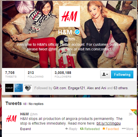 Public Tweet from H&M: