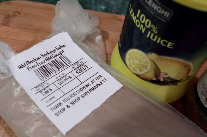 This is what an average 1.25 pounds of Wild Alaskan Sockeye Salmon will cost. Farm raised is noticeably cheaper but of course there are a lot of studies about the practices to produce farm raised fish (you can read more about that here)