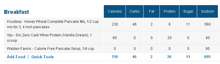 Today was a huge snow storm here in New Jersey which dumped us with over a foot of snow near me. This meant that I was going to work from home and decided to treat myself to a batch of protein pancakes! I don’t normally have enough time to make these so today I was eager to get these bad boys on the plate and in my belly! The best way to make them if you aren’t too cook at “from scratch” recipe making is to use a whole wheat pre made mix and then add a scoop of protein to the mix. Today I decided to do that since it would be quick and easy with less clean up to do. I used this Wheat & Honey pancake mix by Krusteaz and a scoop of Vanilla Dream protein powder by VPX Sports called Zero Carb SRO. I used 1/2 cup of the pancake mix and 1 scoop of the protein powder. I then added some water until the mix was not too thick but not too thin. I then used a non stick pan and sprayed it with extra virgin olive oil lightly. The best thing to do is heat up the pan first then add the mix. Sometimes people add the batter right after they turn the burner on, but I prefer to wait so they cooking begins quickly when the batter is added. I made two large pancakes with this mix but you can always make a few smaller ones. These came out absolutely delicious and fluffy! To top them I used Walden Farms pancake syrup which is fat free, calorie free, carb free and sugar free!