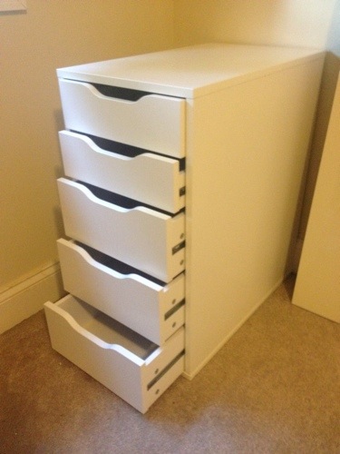 The tabletop was hard to find but after combing through sites and forums I found it! It’s call the LINNMON table top and you can lay this flat on top of your two ALEX drawers and make a functional desk.