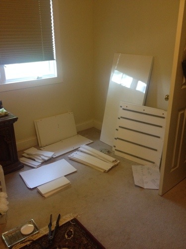 Having used many pieces from IKEA before I know what I am getting into when buying items from there; I know how to put things together and lifting weights daily prepares me for picking heavy boxes up flights of stairs. I like IKEA because the items are simple, clean, durable and not so expensive that you can’t throw them away if you move or give them to a friend. When I started to think about my new vanity set up I originally was going to get an already put together vanity or desk with drawers. I also thought about getting the ALEX desk and then buying separate drawers or storage to put next to it. Then after some digging I found out that I could buy two ALEX storage units, shorter ones, and then buy a separate table top to place on the top of the two units! No need for a desk – I am going to make one with these 3 items!