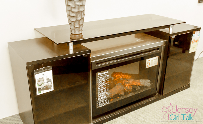 We decided that for our living room we really needed something to help fill up the empty space we had on the long wall where we currently have our TV mounted. While we do have a small media chest underneath for now, it is simply too small and it leaves the wall feeling quite bar. As we walked around the store we were looking at some various options: media/entertainment wall units, a small kitchen table or a long media unit that would sit under the TV. The wall units were very nice, however none came in the color black, which we were searching for to match our current living room tables and coffee table. So we decided to nix that idea and move on to a kitchen table. We thought about it for awhile and thought that adding a small kitchen table could be a nice idea, however it would also take up a good amount of walking space in our living room. We walked around the store some more and stumbled up on this amazing fireplace unit, in black, long and sleek/modern! It was absolutely perfect for our living room. Not only is it a long enough piece to fill up the “dead space” in our wall but it was also black, modern and a focal point for the room. While it was quite pricey, we knew that this piece would be a statement piece in our living room and one we would enjoy for years to come. This was the first item we added to our shopping list and both me and my fiance absolutely loved it!