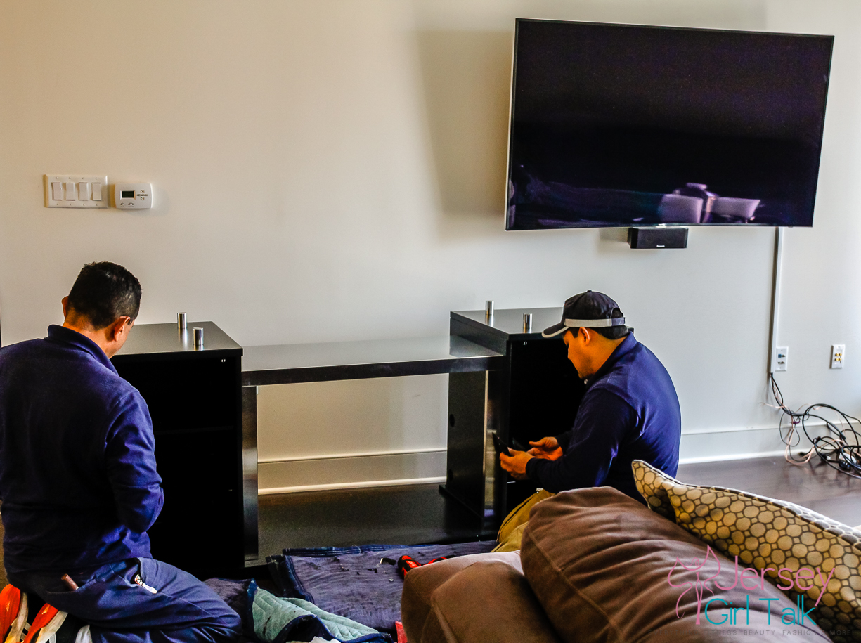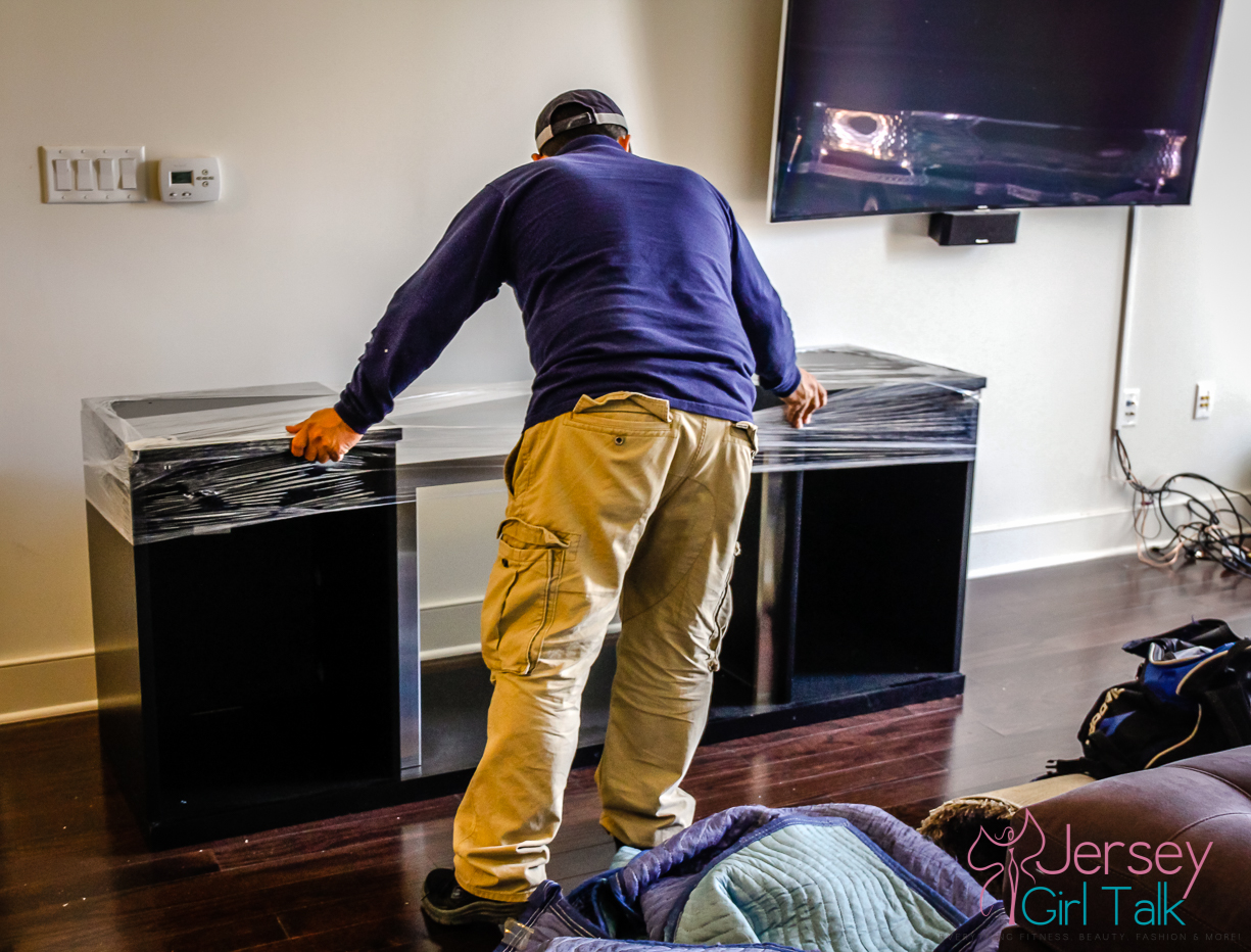 As you may have been following along we are finally starting to have our items be delivered for our #RFbloggers makeover with Raymour & Flanigan. Due to the last few weeks being so challenging with the loss of my mom and things that required me to push off my delivery, I finally had my main large item for our living room arrive this past weekend. We were really excited to finally have our fireplace media unit arrive and as expected the customer service for setting up our delivery was amazing. We got a call during the week from the store to confirm that the date we requested, which was a Saturday, would still work for us. They also always call you the day before to give you a window of time when the delivery will occur. When I’ve had my furniture arrive from Raymour & Flanigan before it always came during the designated time window and usually in the earlier part of the 3-4 hour window. So we were told between 1-4 PM our delivery would arrive and it came around 2 PM which was perfect. The van arrived and two workers were ready to go, literally with smiles, to get us our amazing new living room piece. We were so excited that they came on time, that meant we could have the rest of the afternoon to get things done, instead of waiting around all day like some other places make you do. That’s one thing I will say, Raymour & Flanigan always comes when they say they will and do a fantastic job with delivery, set up and removal of all materials.
