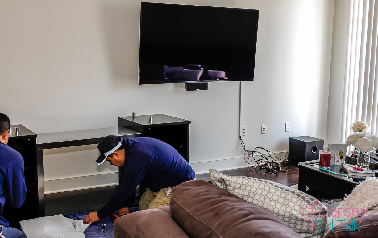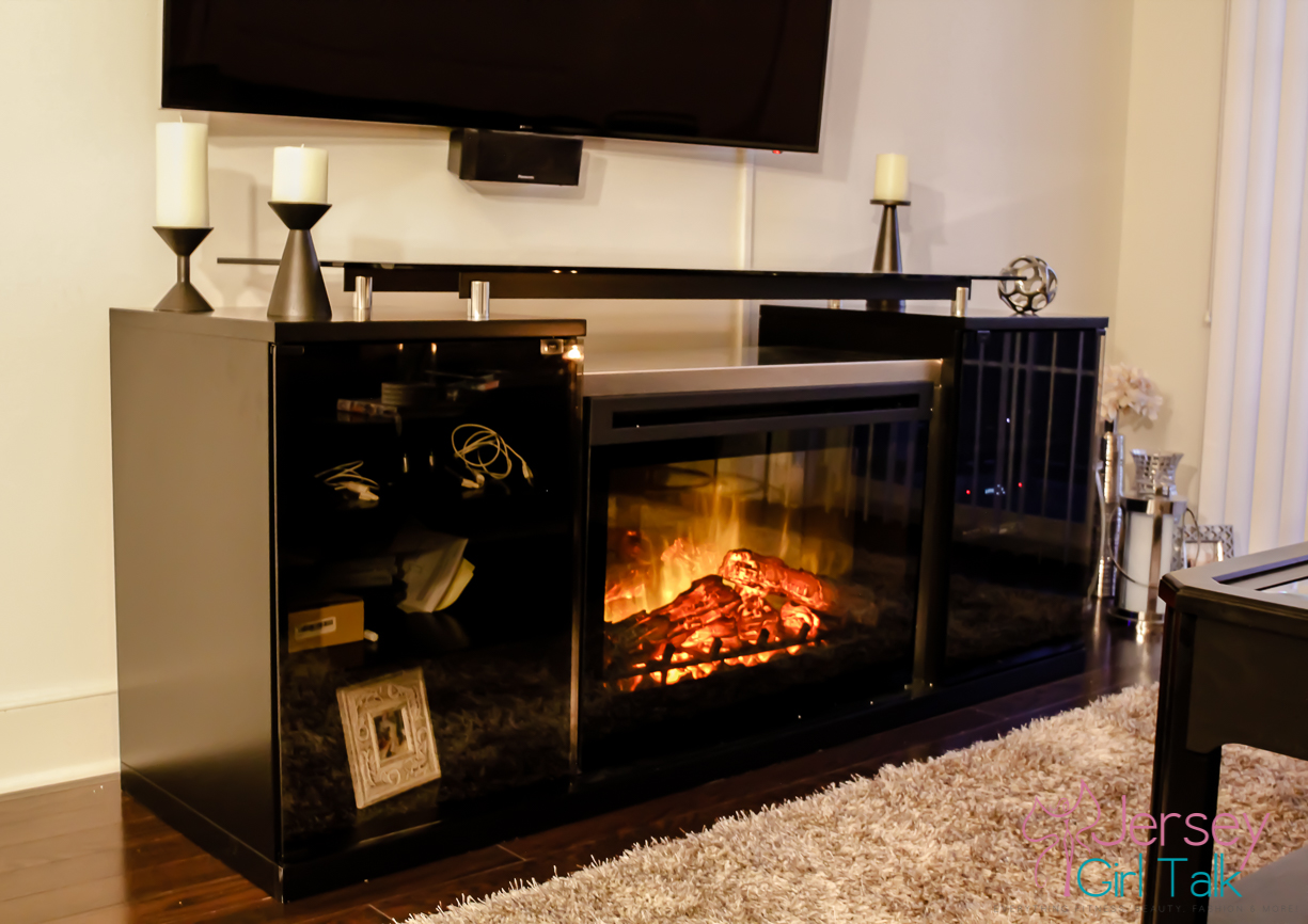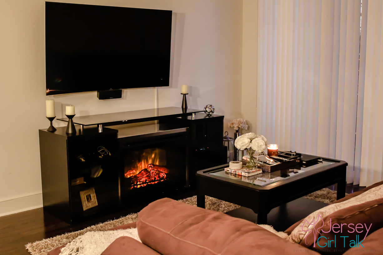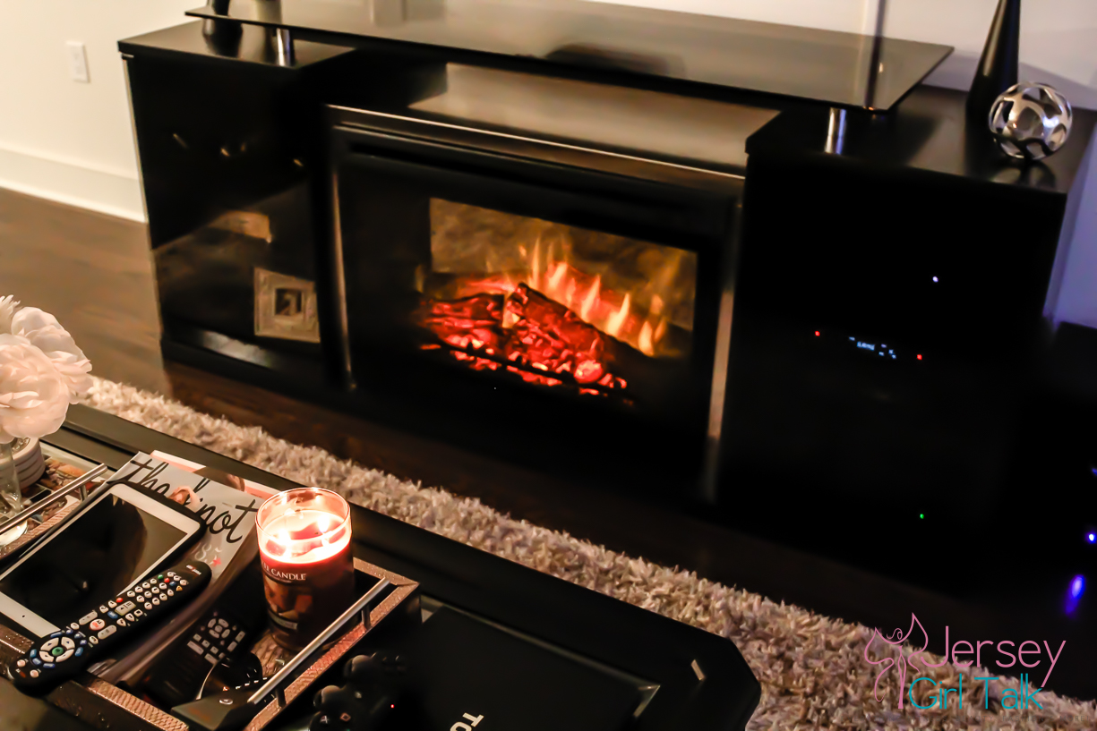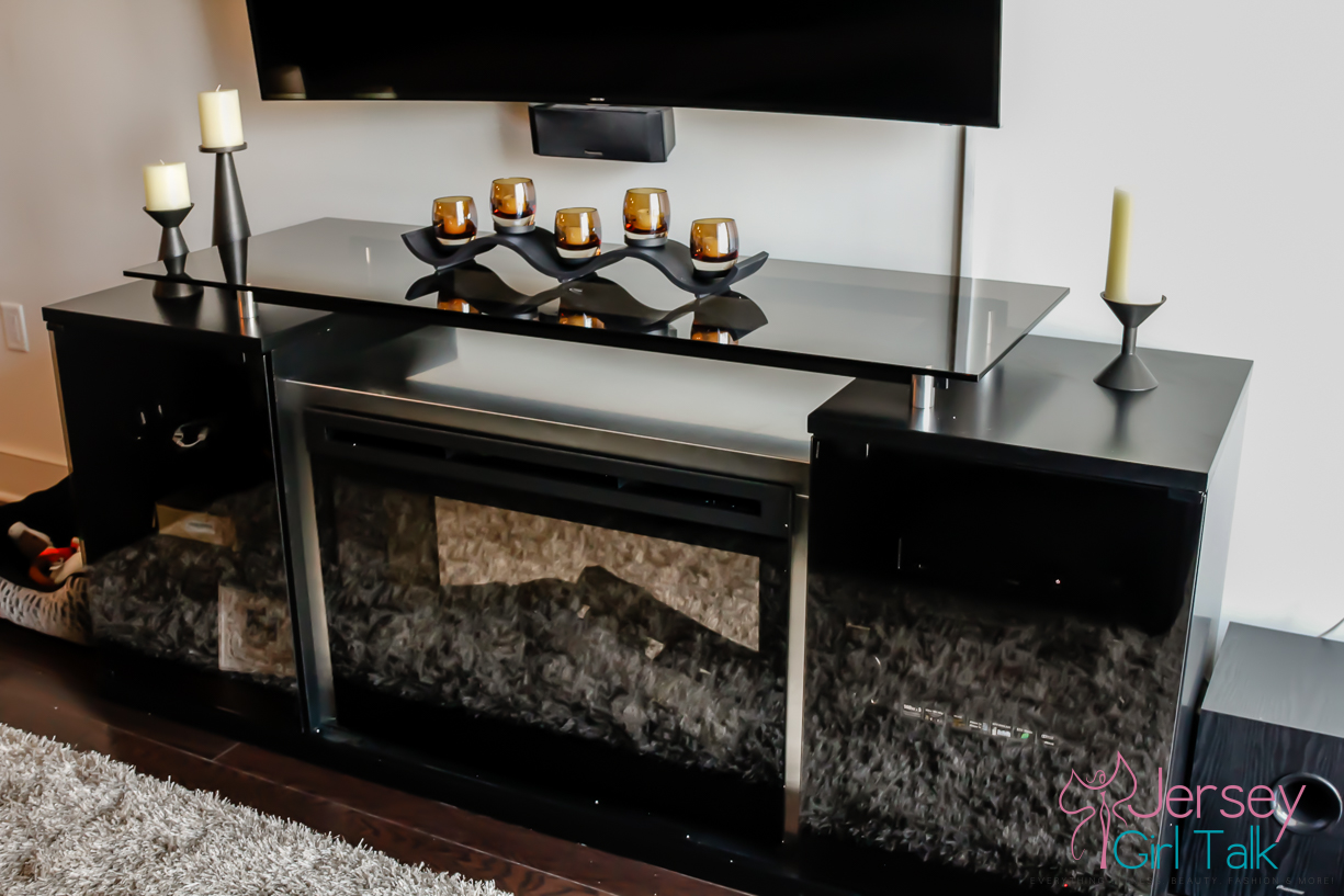 The delivery was for our brand new fireplace media center which we fell in love with in the store when we saw it! It is called the Marana 76″ TV Console with Fireplace and it was one item we knew would fill up our bare living room wall which was currently hosting just a small media center. We saw this unit in a friend’s apartment in Hoboken and we absolutely loved how real the fireplace looked and it also radiates heat too! What was awesome too was this unit is sleek and black which fits our living room decor perfectly, especially right underneath our TV which is mounted on the wall!