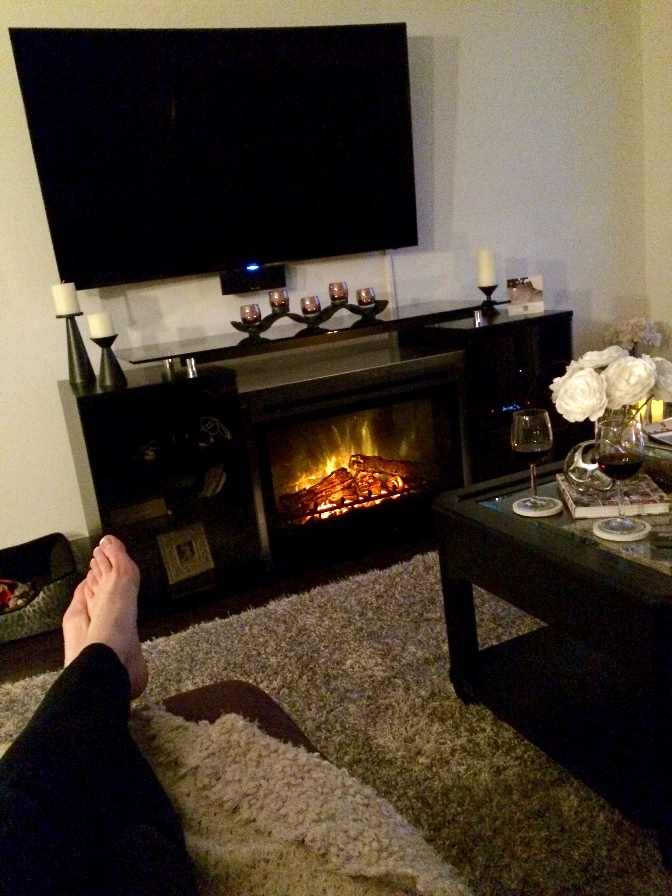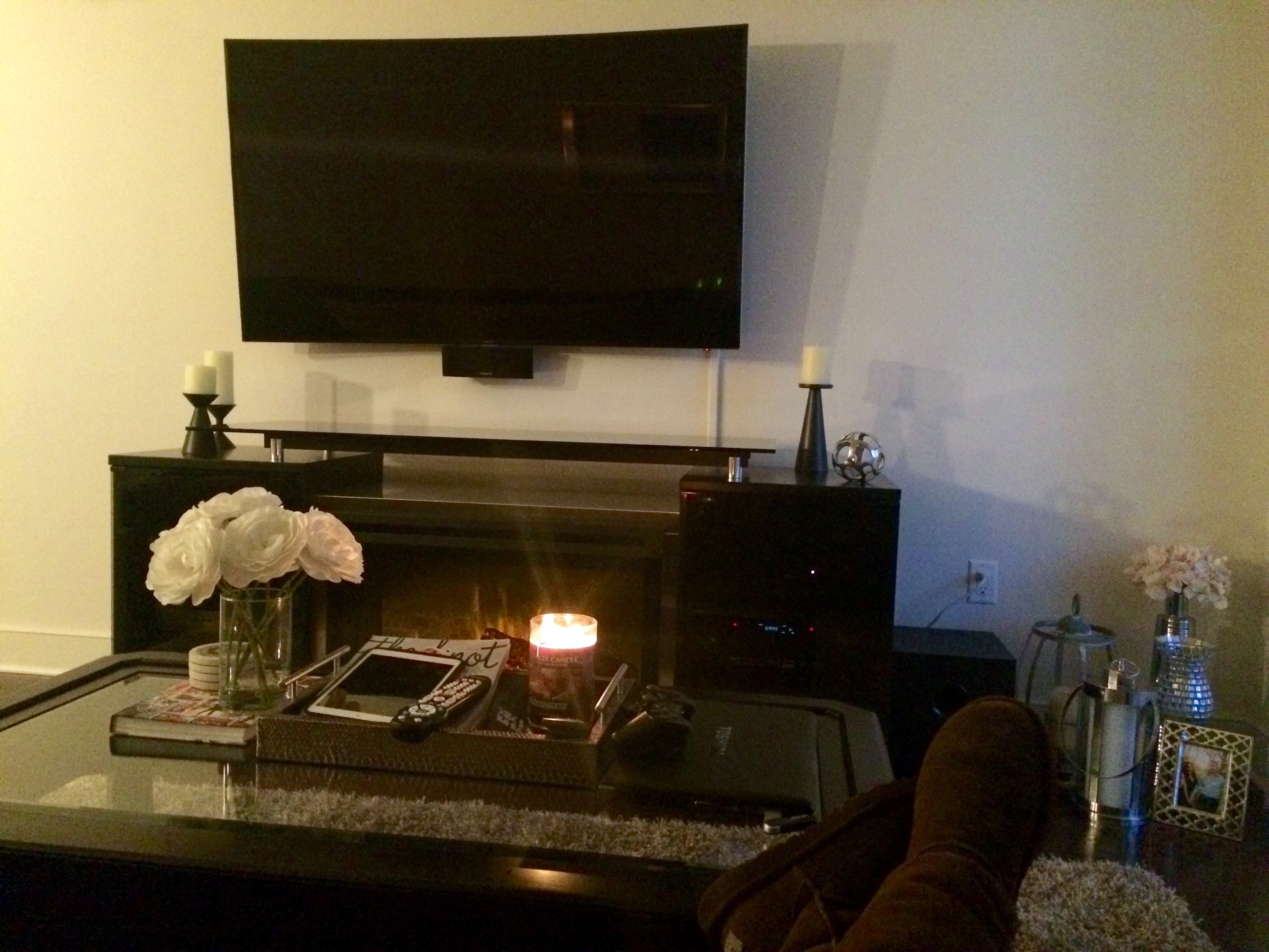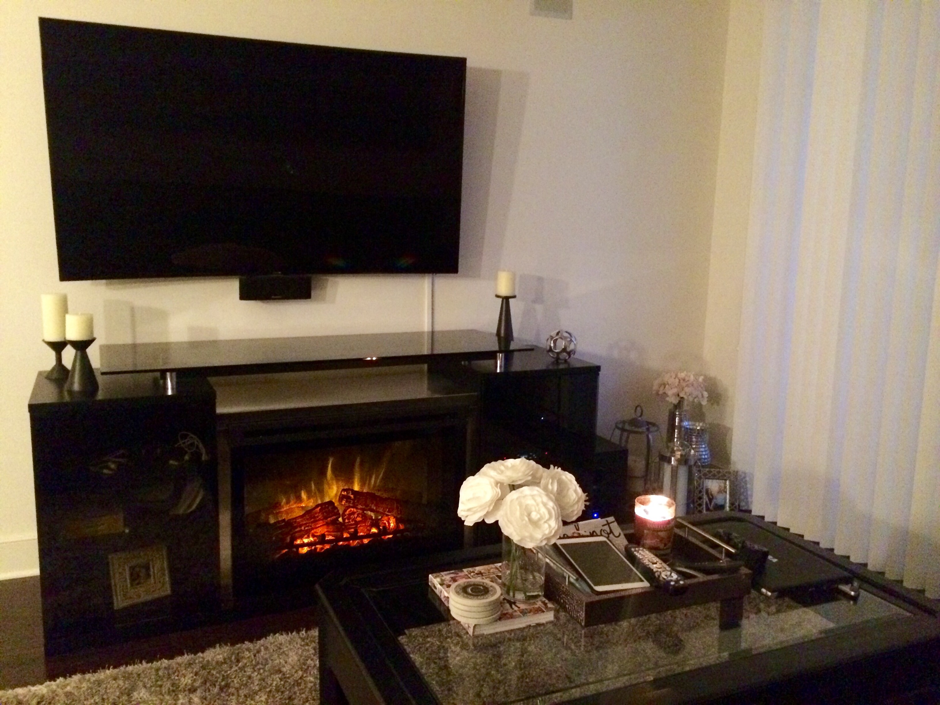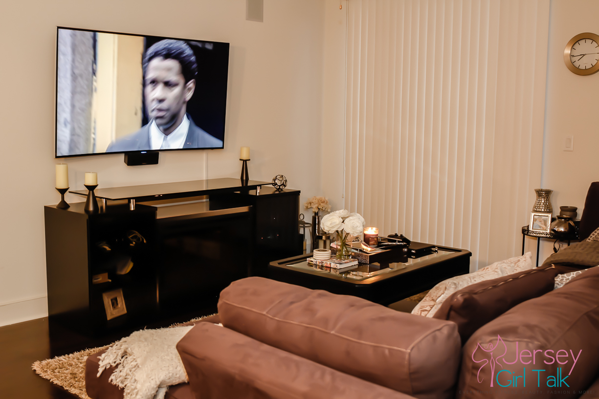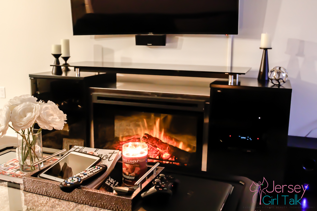 The delivery was for our brand new fireplace media center which we fell in love with in the store when we saw it! It is called the Marana 76″ TV Console with Fireplace and it was one item we knew would fill up our bare living room wall which was currently hosting just a small media center. We saw this unit in a friend’s apartment in Hoboken and we absolutely loved how real the fireplace looked and it also radiates heat too! What was awesome too was this unit is sleek and black which fits our living room decor perfectly, especially right underneath our TV which is mounted on the wall!