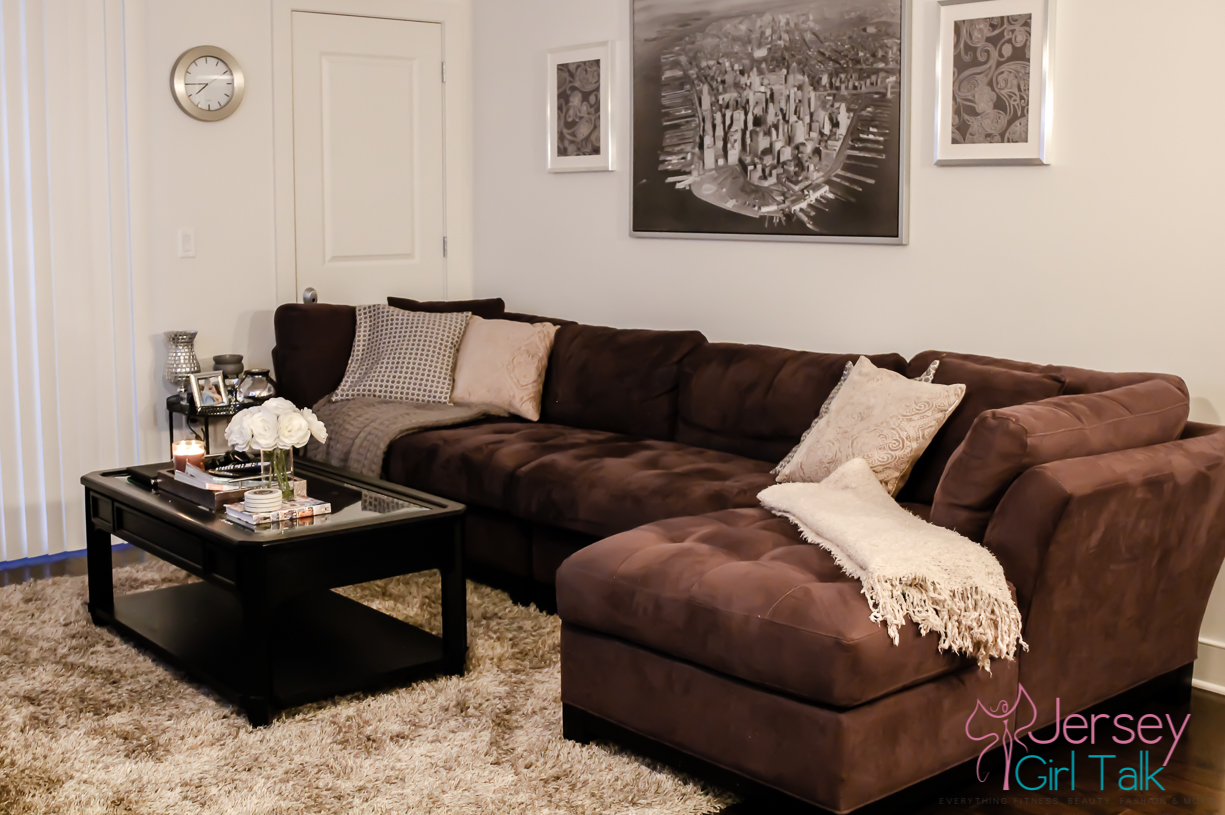 As they continued to work I made sure to clean up the living room to be able to photograph after. Our living room is primarily made of Raymour & Flanigan pieces including our sectional soft and coffee table.