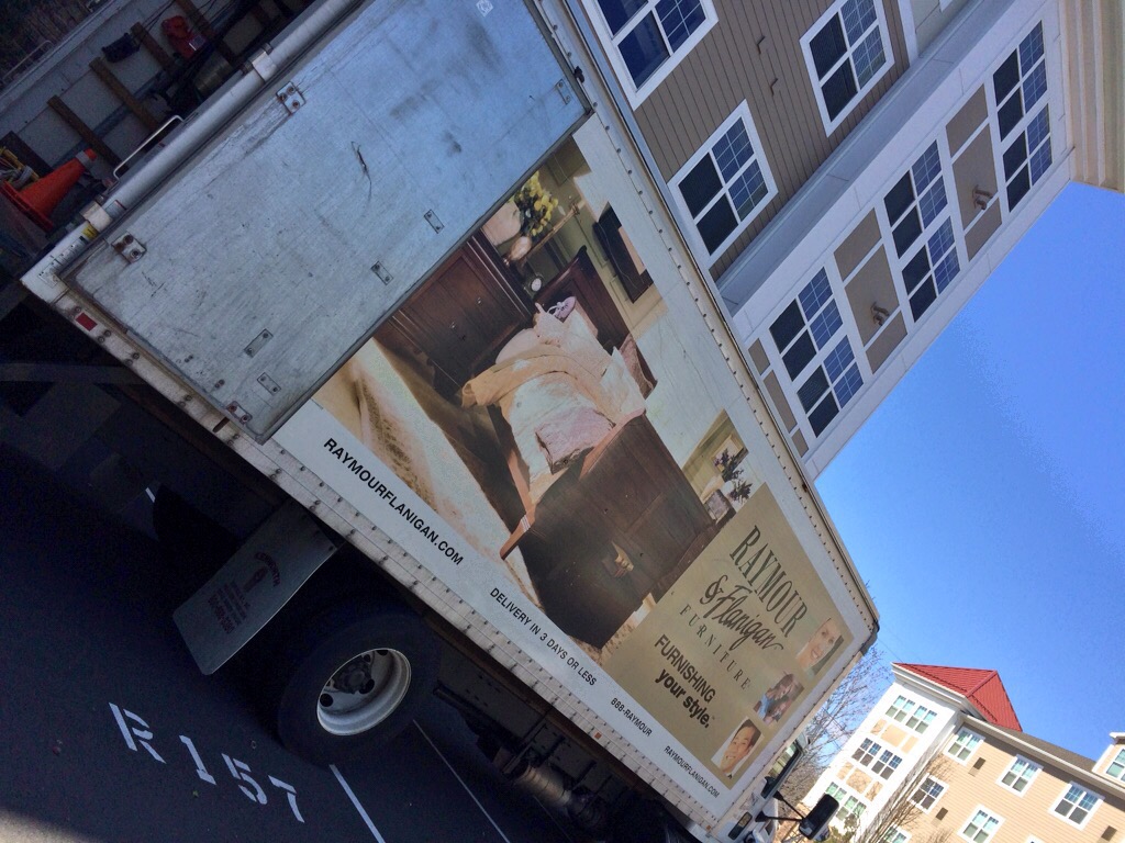 The delivery truck arrived on a beautiful and sunny Saturday afternoon, right on time!