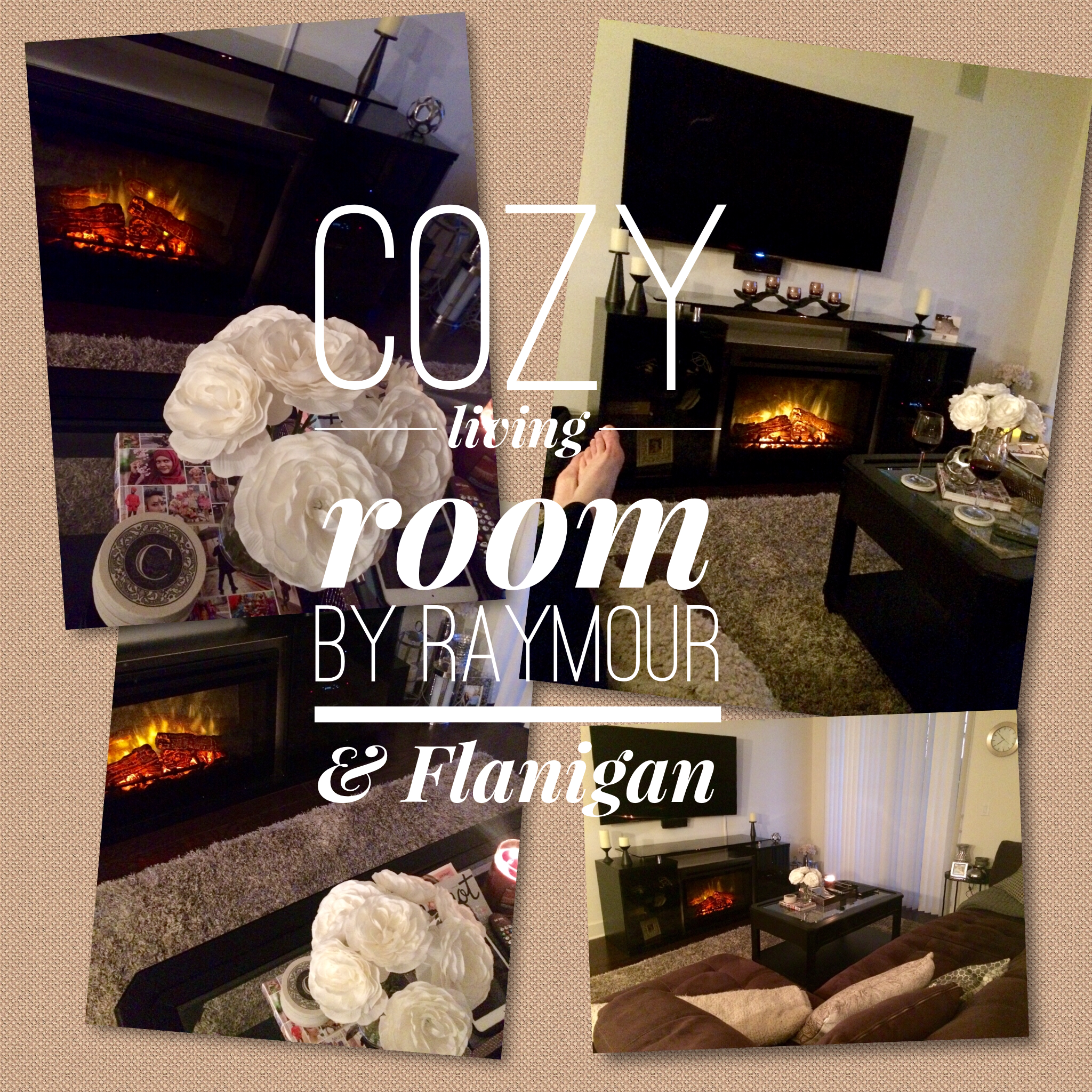 Our Cozy Living Room Update with Raymour & Flanigan Fireplace, Couch and Coffee Table