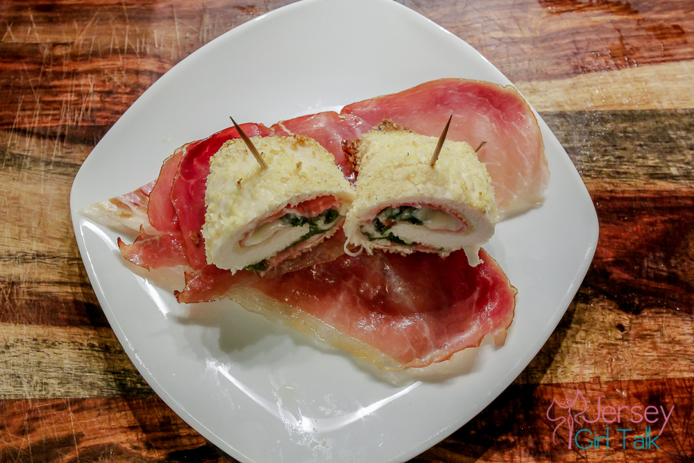 Sunday is my favorite day to make dinner, not only because I grew up in an Italian family that does Sunday dinner (actually it is around 2pm in the afternoon, but still considered “dinner”) and they do it BIG, but because it is a day when I actually have a lot of time to go to shop for specific ingredients and take as long as I need in the kitchen. For the last week I have been plotting and planning to make chicken rollantini, which can also be thought of as baked chicken rolls. I have made these before but it’s been quite a long time so today I was so excited to make these for me and the hubby! Now I have to admit, I don’t eat pork often at all – I never order it when I go out to eat and very rarely purchase any pork products, but my husband love prosciutto so this dish was a special treat for him.