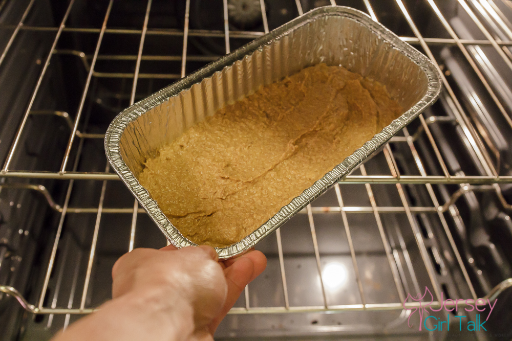 This bread comes out really moist and you can taste the pumpkin flavor through and through but with a little bite to it. To make you will preheat your oven to 350 degrees and have a bread pan that you will spray with olive oil spray so the bread does not stick to the tin. I like to use the disposable bread tins since you can just throw them away after without having to clean it.