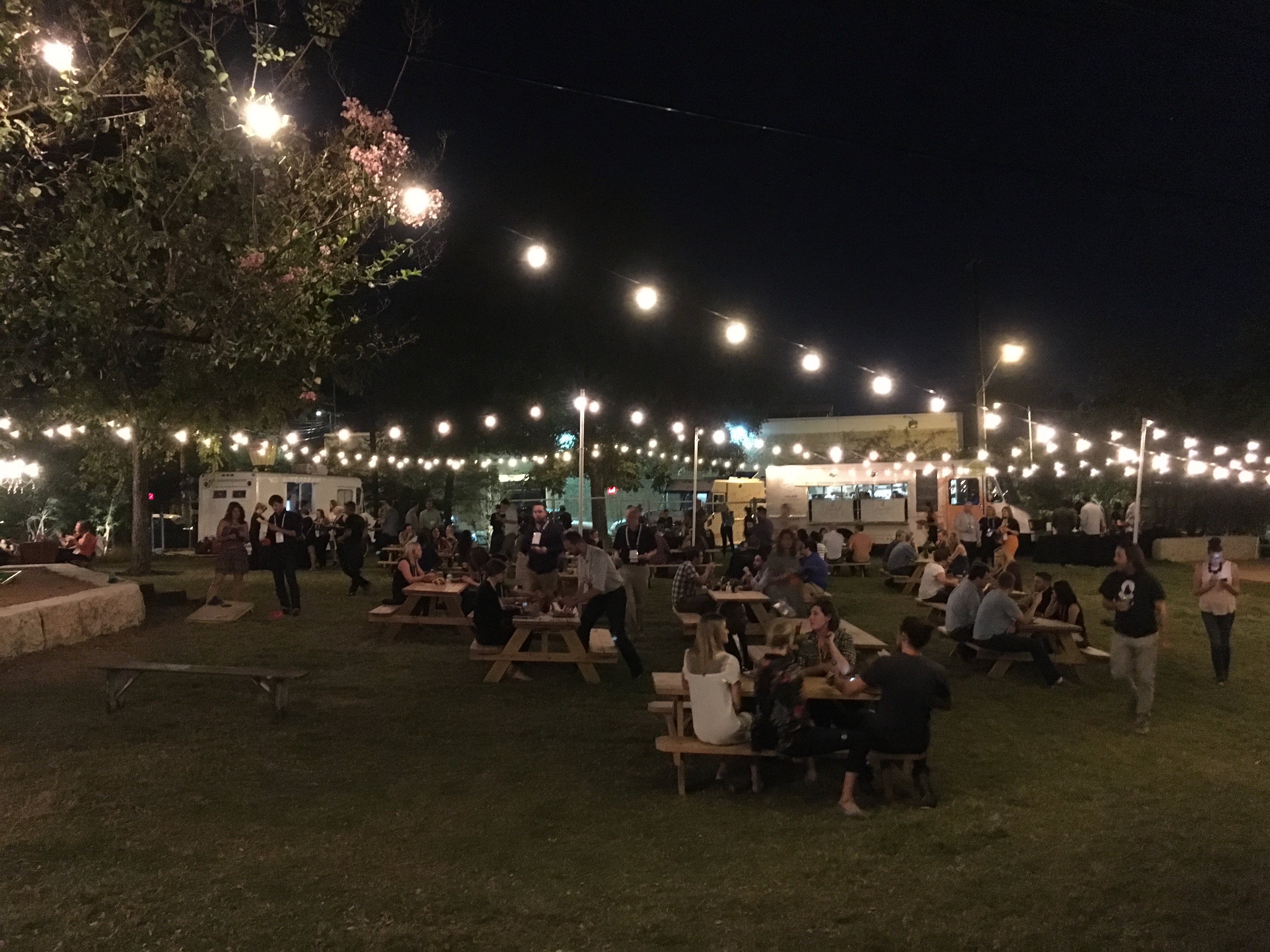 On our last night the company that was hosting the conference had a dinner and party for all the guests which was held at a super cool space called Fair Market. This place had a fun open area set up with hanging swings, a photo booth and cool furniture to lounge in. The outside was all open grass and benches and food trucks! The food trucks were amazing with local food like chicken tacos, grilled brussel sprouts and brisket sliders. I wish we had a place like this in New Jersey!