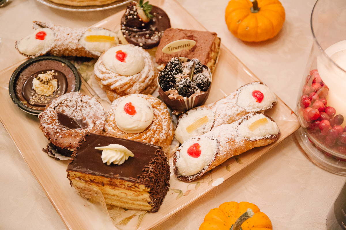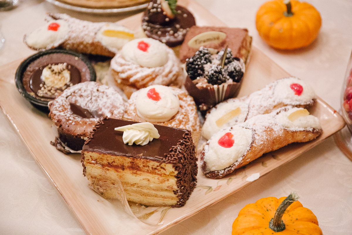 We spent the holiday with our family getting together to enjoy good food and company – what Thanksgiving is all about. My mother in law made the most amazing spread and I was happy to help her in the kitchen. She has taught me a lot about cooking and it’s so nice being in the kitchen with all the sounds and smells, a glass of homemade vino and catching up with everyone. We always start with tons of appetizers, then move on to pasta, then turkey and all the dinner fix ins. The last part of the meal is always with coffee and desserts. The desserts are always my down fall, I love pastries so for me it’s a challenge to not fall into a sugar coma. The pastries were from a bakery shop in Nutley, NJ called Aroma di Napoli.