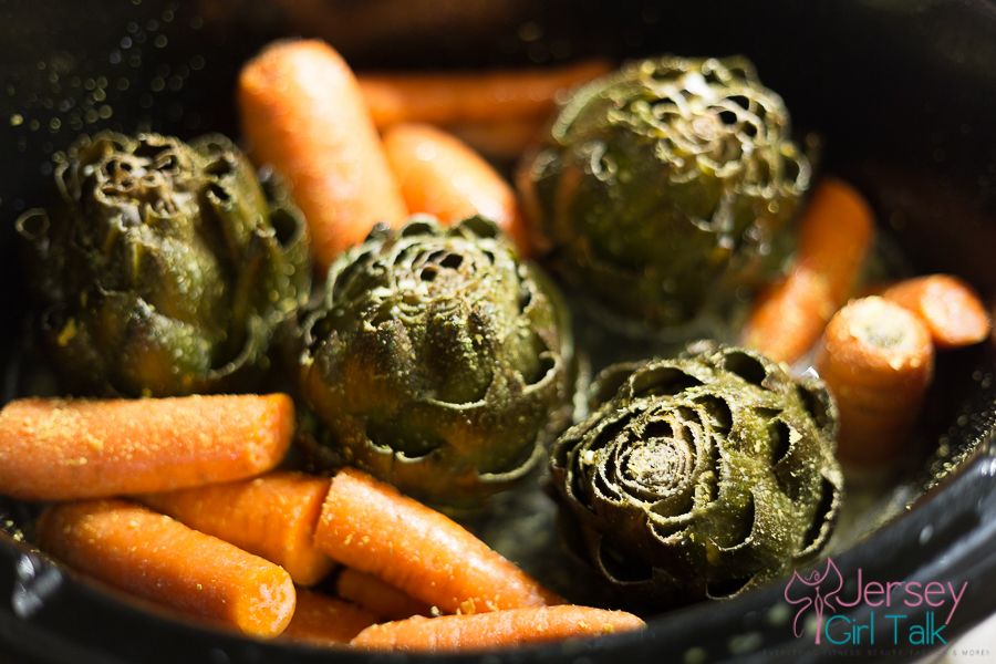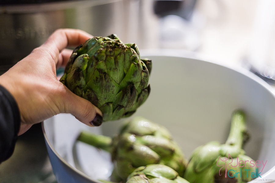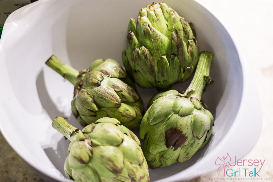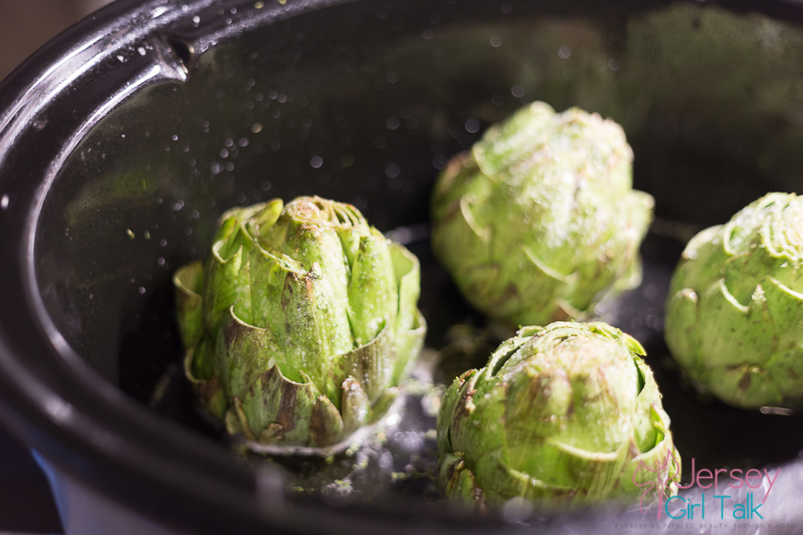 To make my artichokes I first clean them, cut the tips and the steam then steam them either in my Cuisinart slow cooker for 4 hours in 2 inches of water with some lemon and salt or I do the same thing for around 40 minutes to 1 hour in a boiling pot
