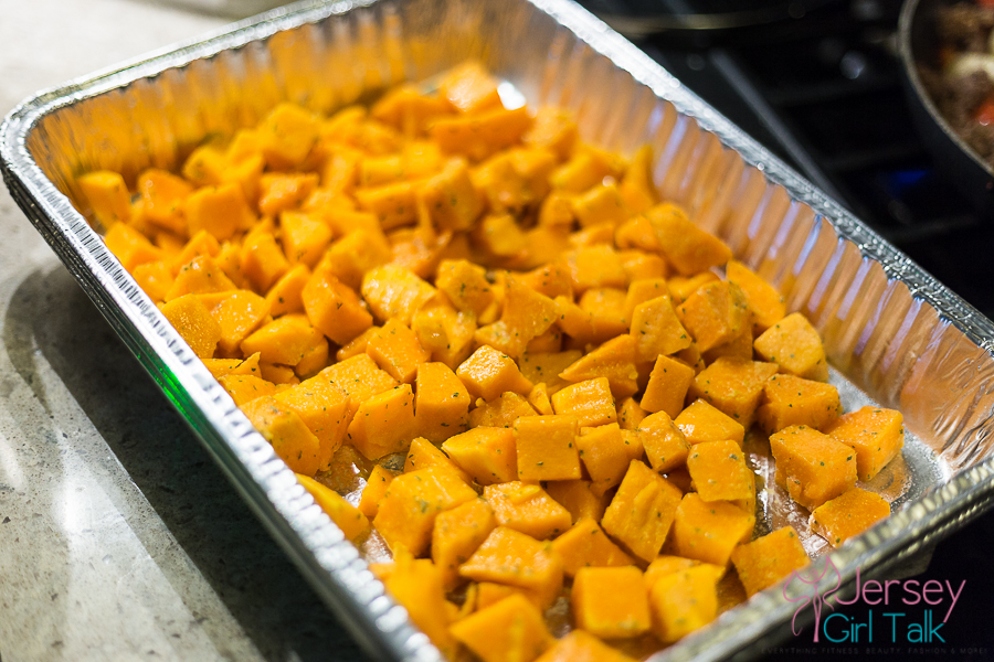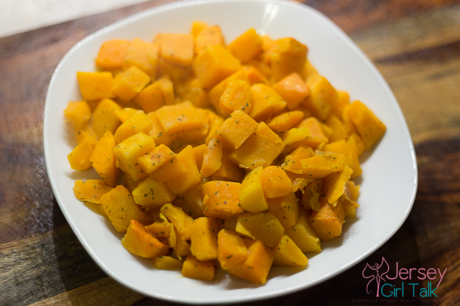 As a potato alternative I made some butternut squash cubes baked in the oven with organic coconut oil, bragg’s nutritional yeast seasonings