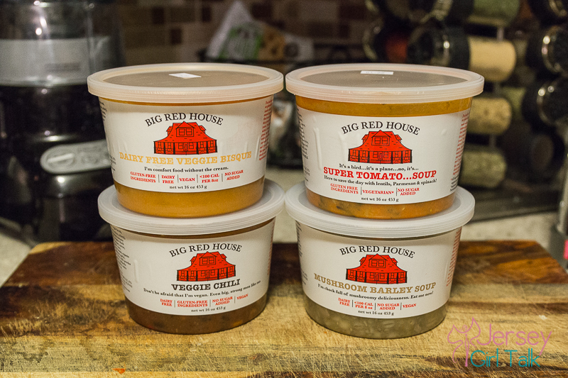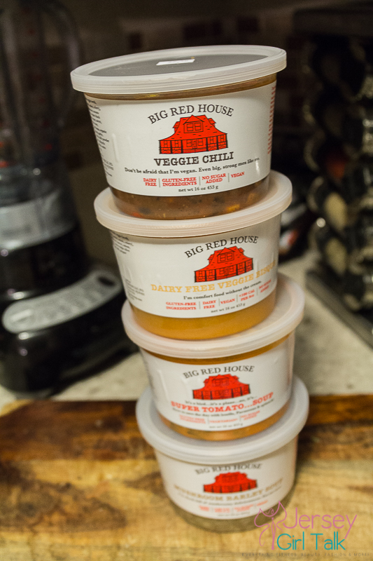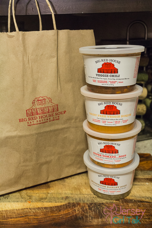 As a New Jersey native, born and raised, I love to support businesses opening up in my local community who are doing great things. I recently was contacted by Big Red House Soups to test out their four delicious flavors which were delivery straight to my door. I came home from work to a little brown bag waiting at my door step and just couldn’t wait to dive right into these with a big spoon. I love soup, I think I could live on soup as a full blown meal for weeks and weeks and never get bored. I love soup even in the summer time, but in the winter it’s just the perfect thing to warm you up on a cold day, curled up on the couch with the dog and a good movie.