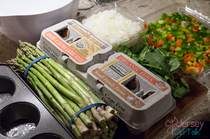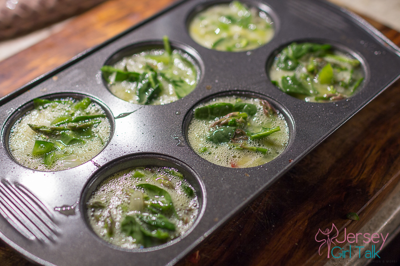 For me I love to use asparagus, spinach, red and green peppers, onion and tomato in my muffins – but again just make sure to keep changing it up. I make these in the evening while I bake whatever I am making for dinner and then literally by the morning maybe 1 is left – my husband and I love these for snacking! They are a high protein, high fiber, low carb meal prep option.