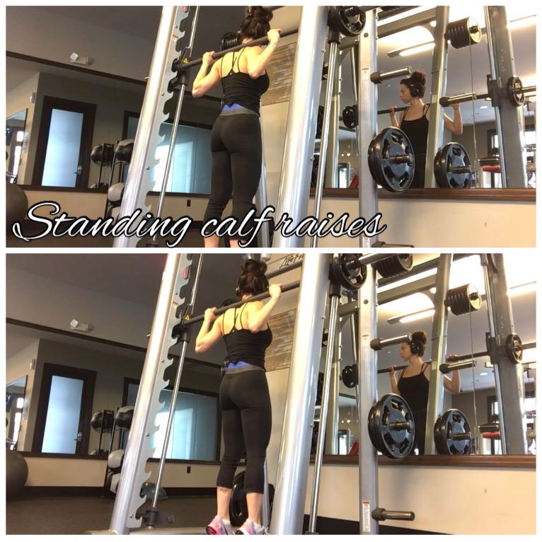 Smith Machine standing calf raises – 4 sets of 20 reps