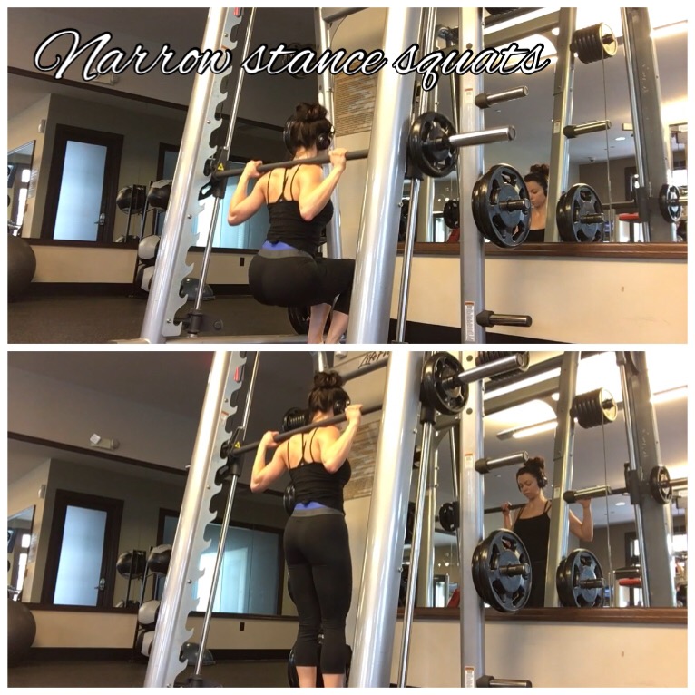 Narrow Stance Back Squats – 4 sets of 10 reps