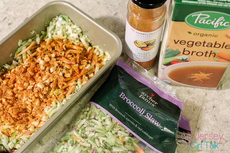 I also tried something new this evening using broccoli slaw and some cauliflower crumbles. I have never bought either of these before but wanted to give it a go. In a baking tin, like the kind you would use for meatloaf, I place half of the package of each, filled up 1/4 of the pan with organic vegetable broth for flavor, used The Gourmet Collection Veggie and Fries seasoning and put in the oven for 30 minutes. It turned out really good and I will surely make this again.