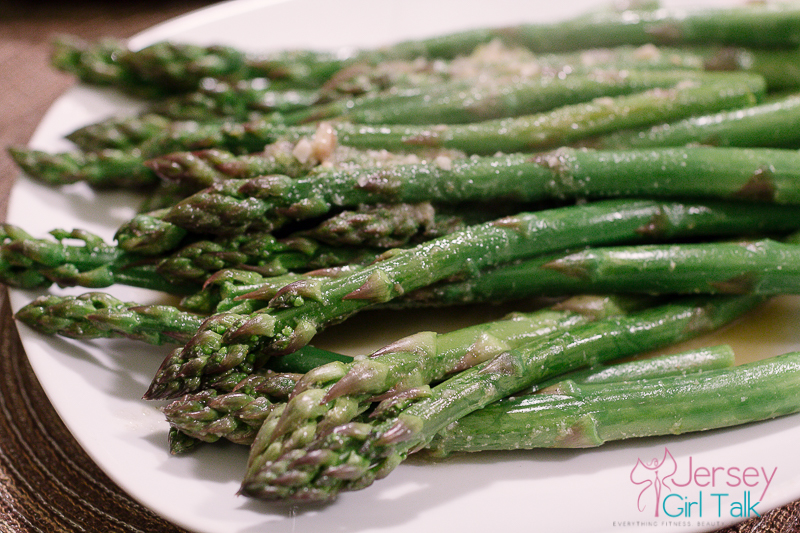 For my vegetables tonight I went with a favorite of mine – asparagus. I bought a huge bunch of these and made them using some extra virgin olive oil, organic garlic, garlic powder, some organic vegetable broth and simmer these until slightly soft on the stove in a skillet.