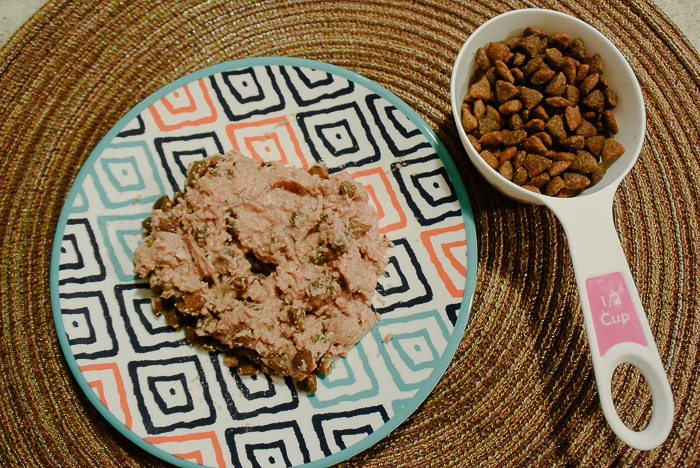 For her size I gave her 2 tbsp of the wet food mixed with 1/4 cup of the dry. She actually took to it very well and the smell of the wet food is like human food! I like to mix wet and dry since she isn’t a dry food eater. She needs a bit of wet food to get her sniffing over by her bowl. The dry food is crunchy and small and is perfect for her. I love that it’s made with all natural ingredients.