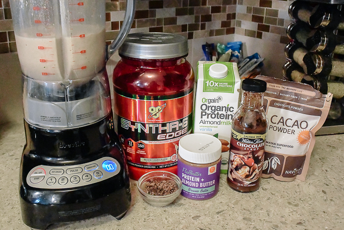Combine all ingredients into a blender (I use a Breville blender which is amazing for protein shakes!)