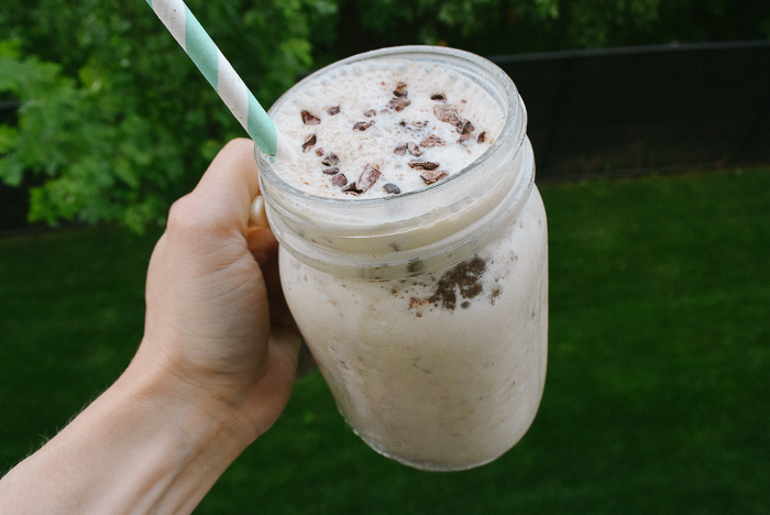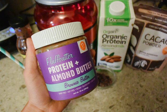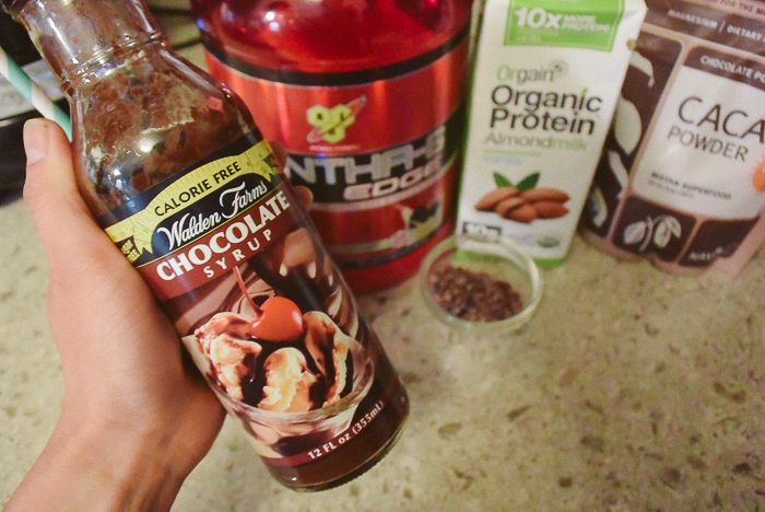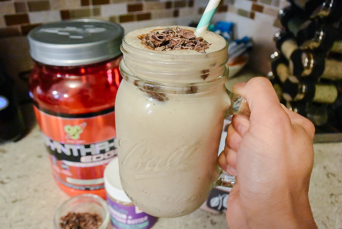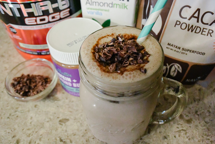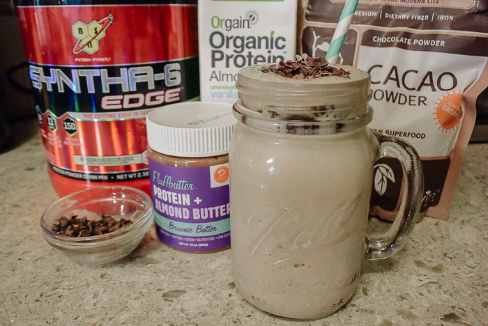 After a hard workout at the gym there’s nothing better than coming home and making a delicious protein shake. Of course you can get one at the gym, but why spend the money there and not know exactly what is being put in the blender? For me making a shake after my workout is fun! I love trying out new ingredients and flavors and last time I checked gyms don’t have all the ingredients that I do in my pantry. I like using lots of super foods, almond butters, almond milks and a variety of protein flavors to make new shake recipes. Today was all about combining two of my favorite flavors: chocolate and cookies and cream!