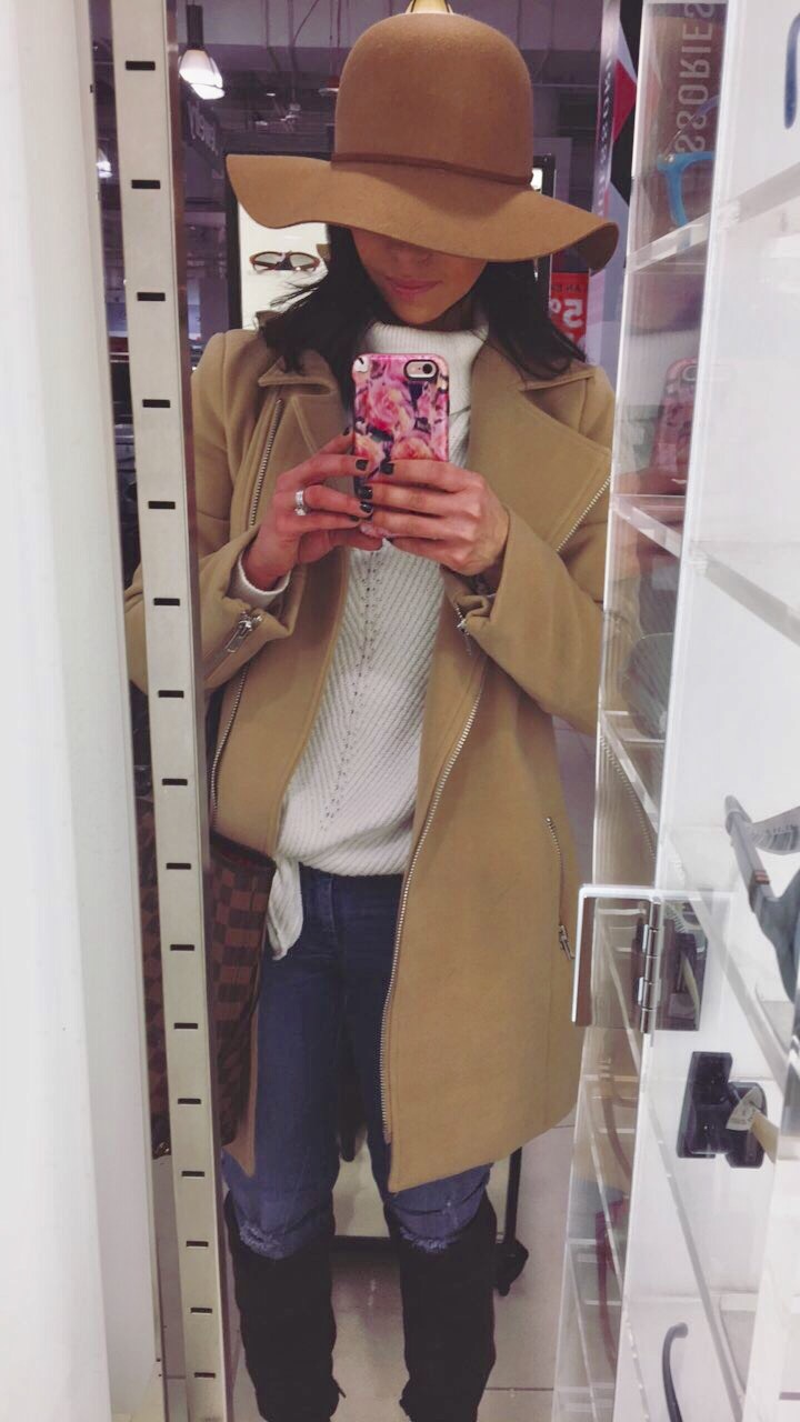 I also fell in love with this floppy, camel colored hat. It fit my head perfectly and is great to wear with my current favorite beige coat by MissGuided. This hat is so comfortable to wear and I love it with long, loose curls in my hair and the wrap scarf I picked up on my shopping trip as well.