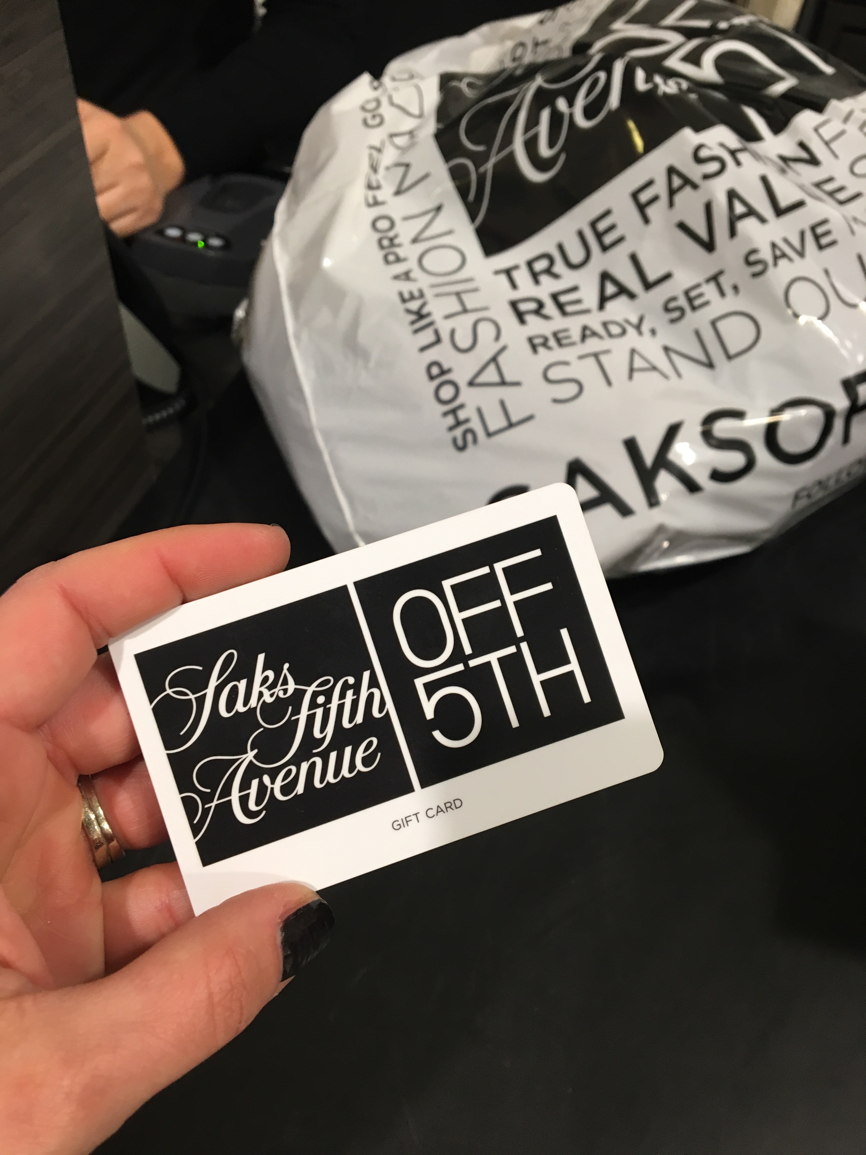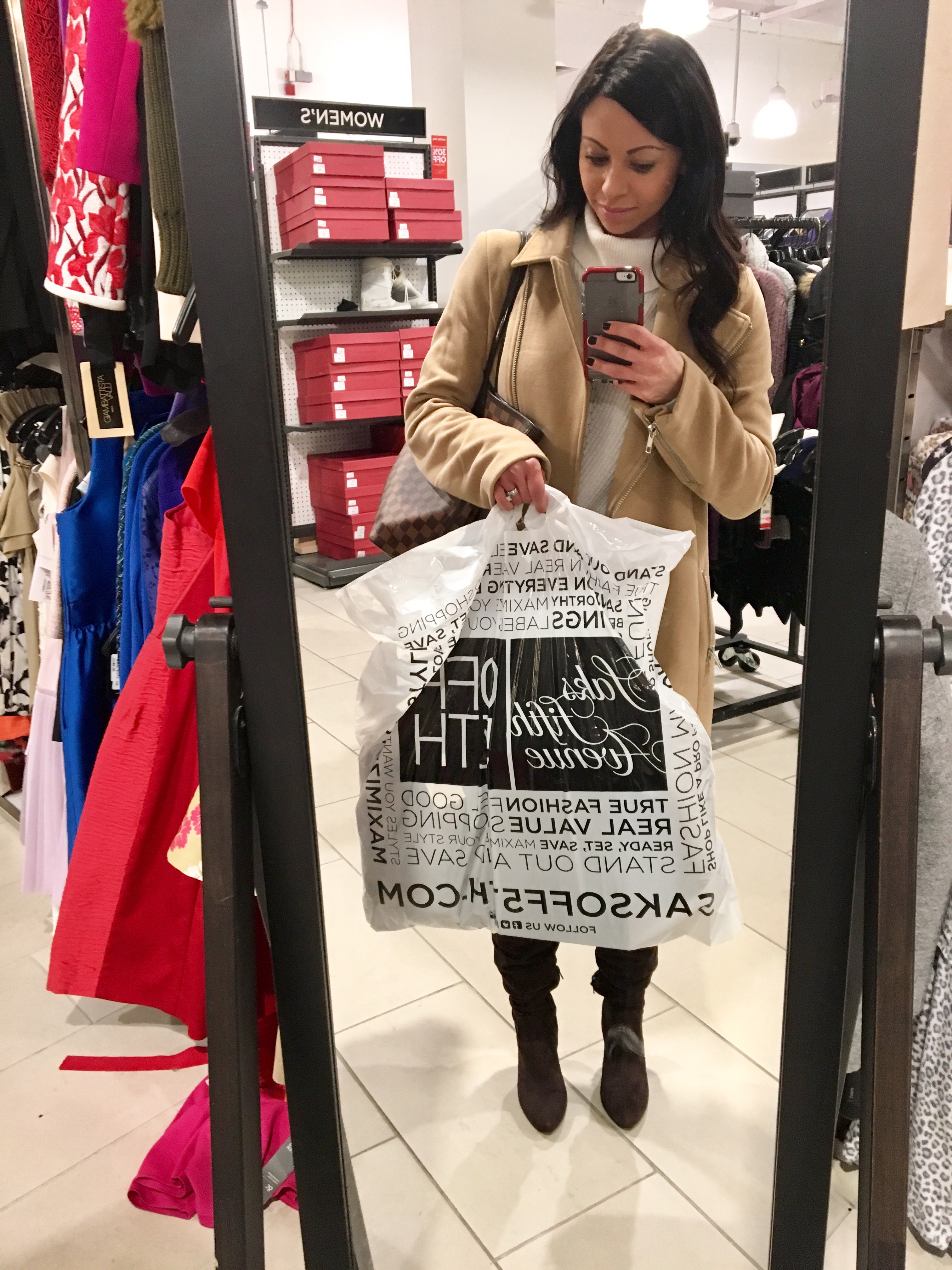 Hi friends! I hope you are all having an amazing start to the holiday shopping season. I have had no time at all to get to the mall or shopping centers to buy anything on my holiday lists for friends and family, but I was so thankful that the team at Saks Off 5th sent me a gift card to check out their store in Paramus, NJ to see what I might get with a $100 gift card. The PR team at Saks Off 5th is amazing and they sent me an adorable winter hat to keep me warm during the winter time and a gift card to treat myself to some great finds (which I did!).