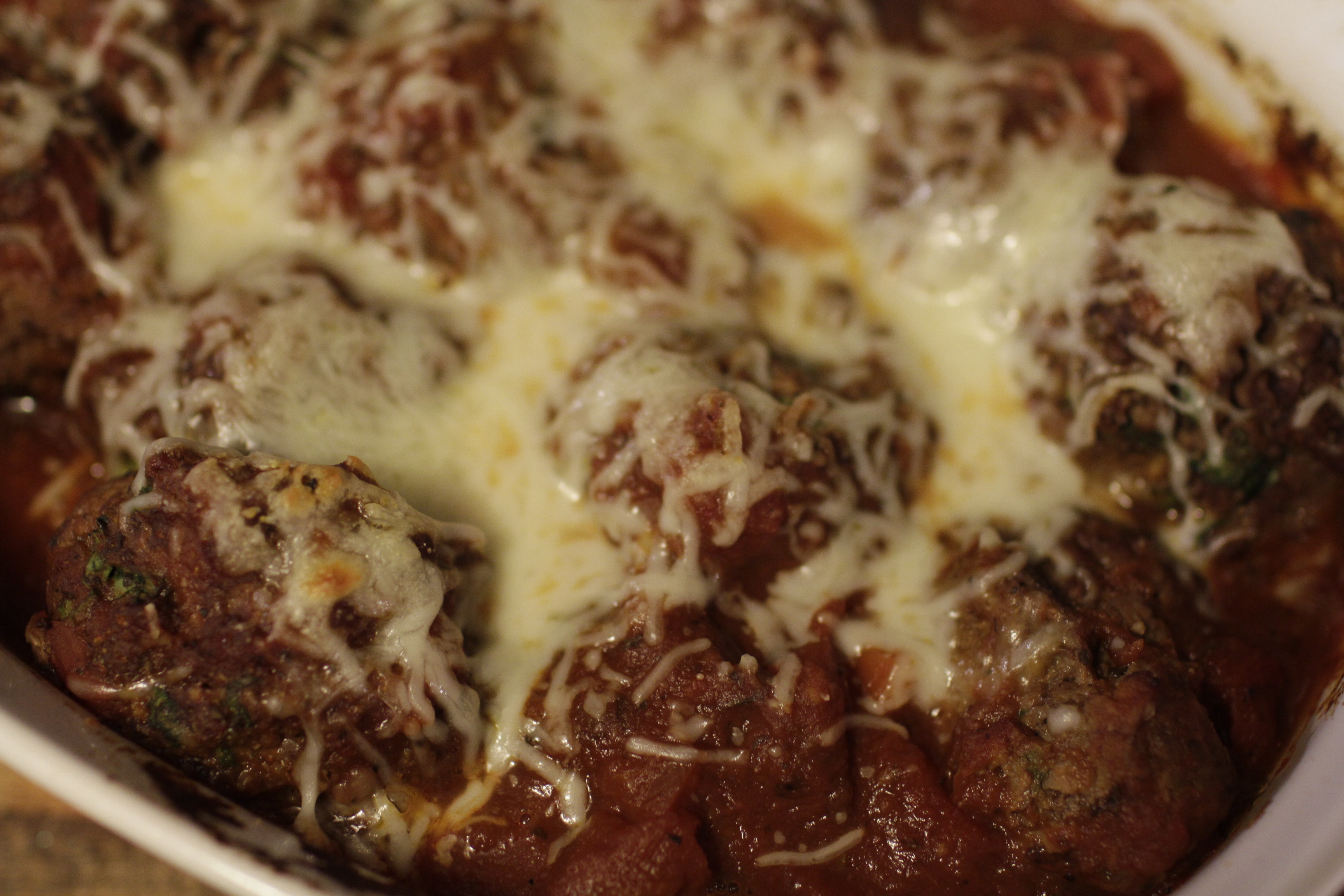 I spray a Corningware bowl with coconut oil spray to prevent the meatballs from sticking. I then roll them up into a medium size and put them in the over for 40 minutes at 385. Once they are done you can eat them as is, add mozzarella cheese on top or add some organic marinara sauce for a quick meal.